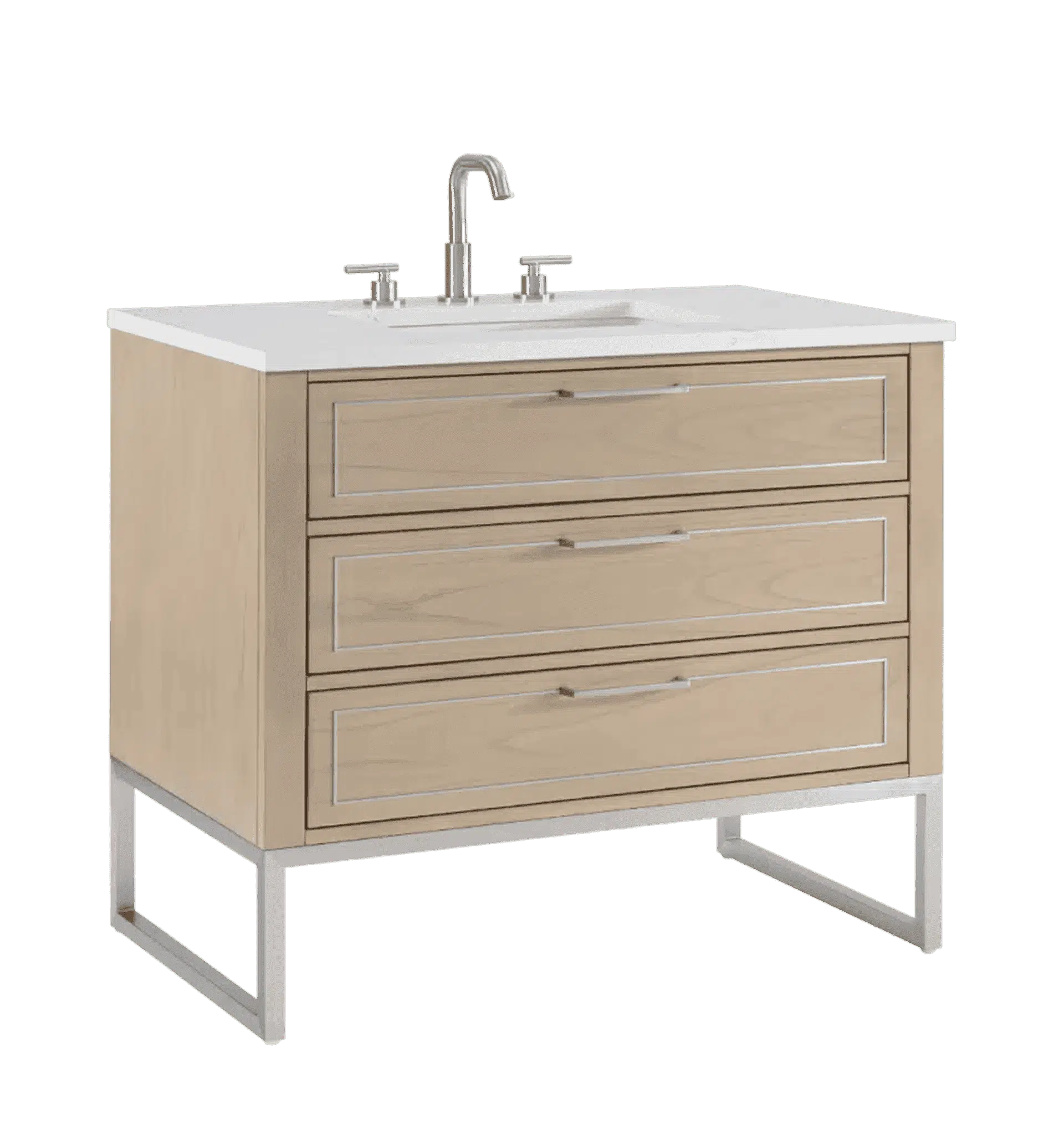 Distinguished by their refined form and functionality, each vanity is expertly crafted, with a kiln-dried solid wood frame construction to ensure long-lasting quality.