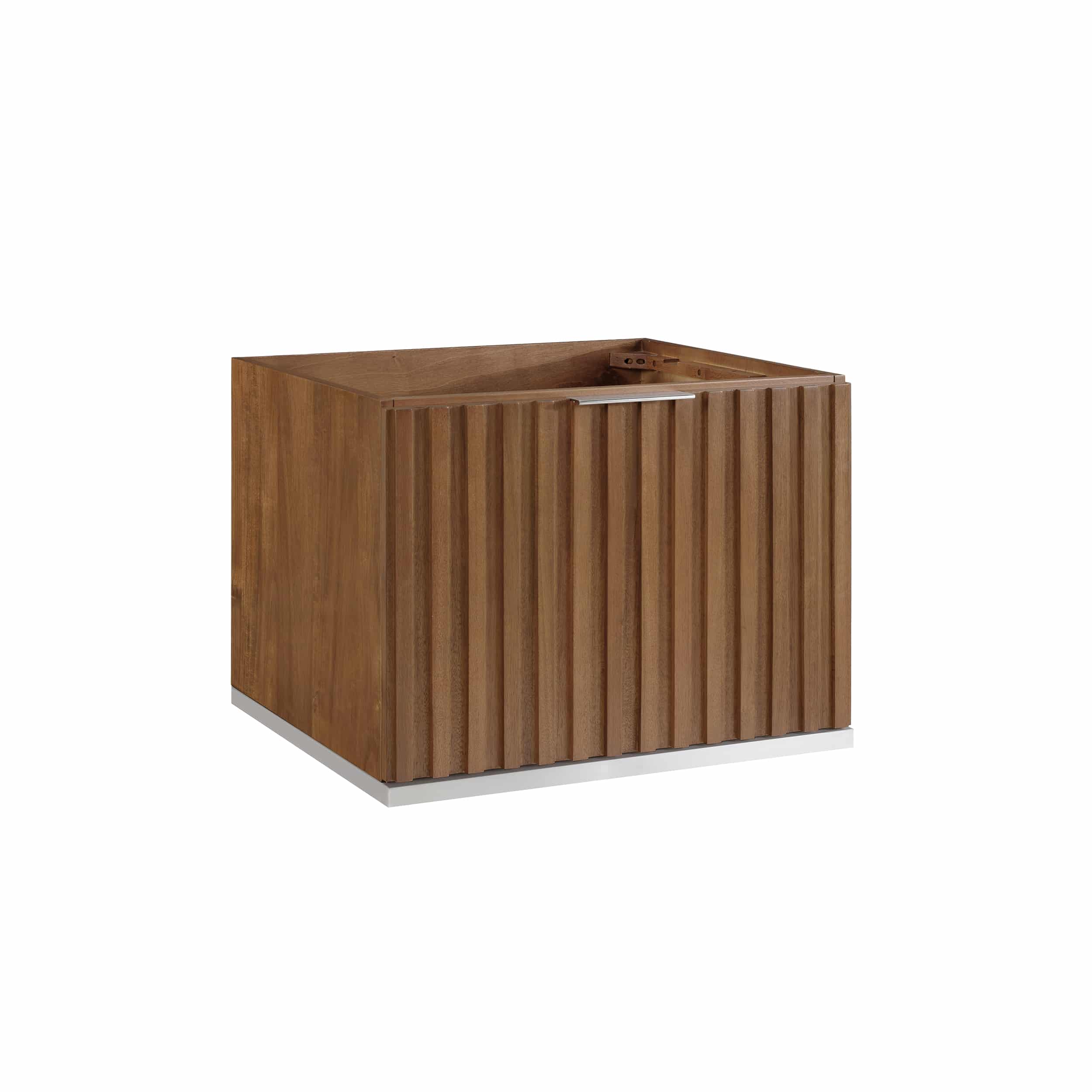 Named after the Latin word for “earth”, the Terra features elements that evoke the natural world. Inspired by wooden architecture, its fluted design mimics the lines found on tree trunks, bringing the beauty of nature into your home. This unique design is paired with a sleek wash veneer finish and practical storage features like an integrated shelf and deep soft-close drawers. The premium glides ensure effortless motion, while the dovetailed joints provide seamless joinery, all contributing to an easy-to-maintain, modern and trendy bathroom.